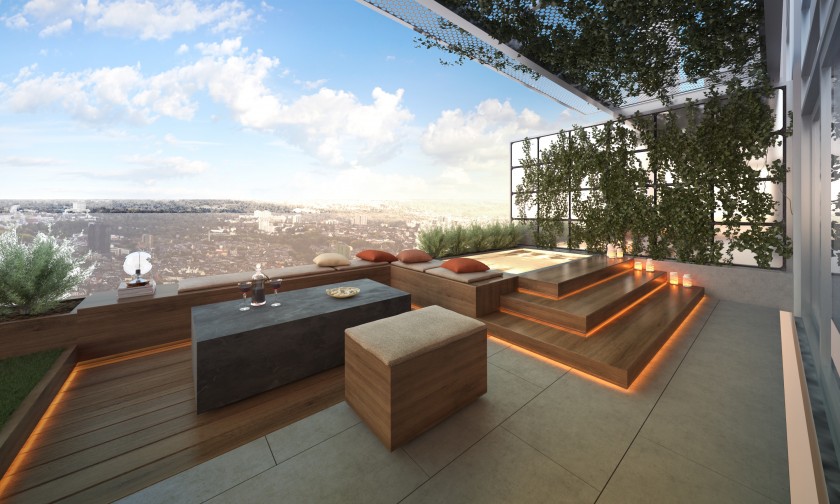 This is a landscape project where the indoor-outdoor space continuity of the terrace with a great view of Istanbul was ensured, the indoor comfort was paid regard to, contains a vertical garden together with a barbeque, a vegetable garden, a hot tub and dining and sitting areas and belongs to one of the 42Maslak lofts, a combined project that brings together residence, office, shopping mall and hotel concepts.