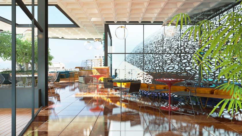 This is a project that contains open and closed volumes consisting of a main mass with café-restaurant functions and a space within this main mass allocated for children within the living space complex consisting of a three floor residence block and eight floor integrated structure located at the center of Baku.