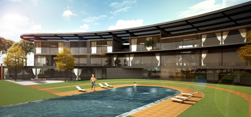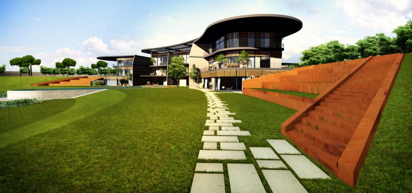 The project, designed to accommodate special guests within the Dreamland complex, consists of a structure of 4 different units that have a single mass form positioned with a view that overarches the golf sites in the north western direction. The main mass was designed as a large multi-site that could answer the needs of different activities and where special organizations can be held in addition to providing accommodation while the 3 side units were designed solely for accommodation. The privacy of the front façade and yard of the structure was ensured with the U form of its internal yard leading to the golfing area and the peripheral wall of the semi-circular plan surrounding the garden. The middle section of the mass was retracted for the privacy of the independently designed units.