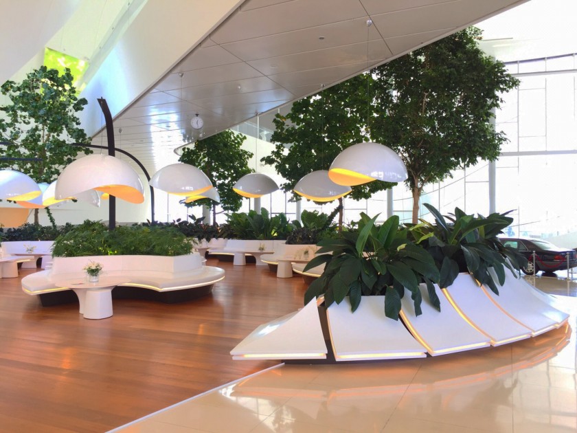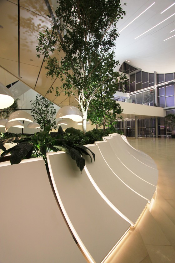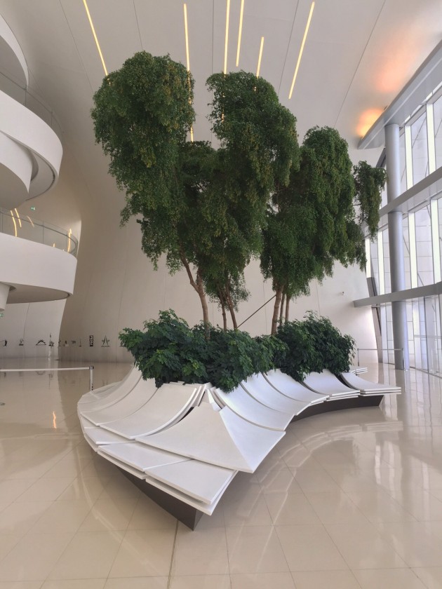 The cultural center structure, designed by Zaha Hadid, has opened its doors on a 101.000 meters square area in Baku and contains a concert hall, a conference hall, a library, a museum and art galleries and its landscape project was finalized by a long planning and research process concerning the botanical infrastructure and a plant selection that completely fills the integral indoor volume which has a 128 meter ceiling modulation without columns. A vegetation design that can handle the light intensity and volume in the indoor space and would ensure high performance dominated the design. The decision was made to use Bucida Buceras, one of the endemic species of Florida and each tree used was selected on site to have the characteristic of being the longest tree that could be planted indoors in the whole continental Europe (8-9 meters). The appropriate fogging and fertilizer mixed drip irrigation systems and soil improvers containing the necessary micro and macro nutrients were specially formulated and were brought to Baku from different locations in Europe by plane. The project can be considered to be one of a kind with its characteristic that answers the volume it wraps in addition to all technical parameters and the project design process.